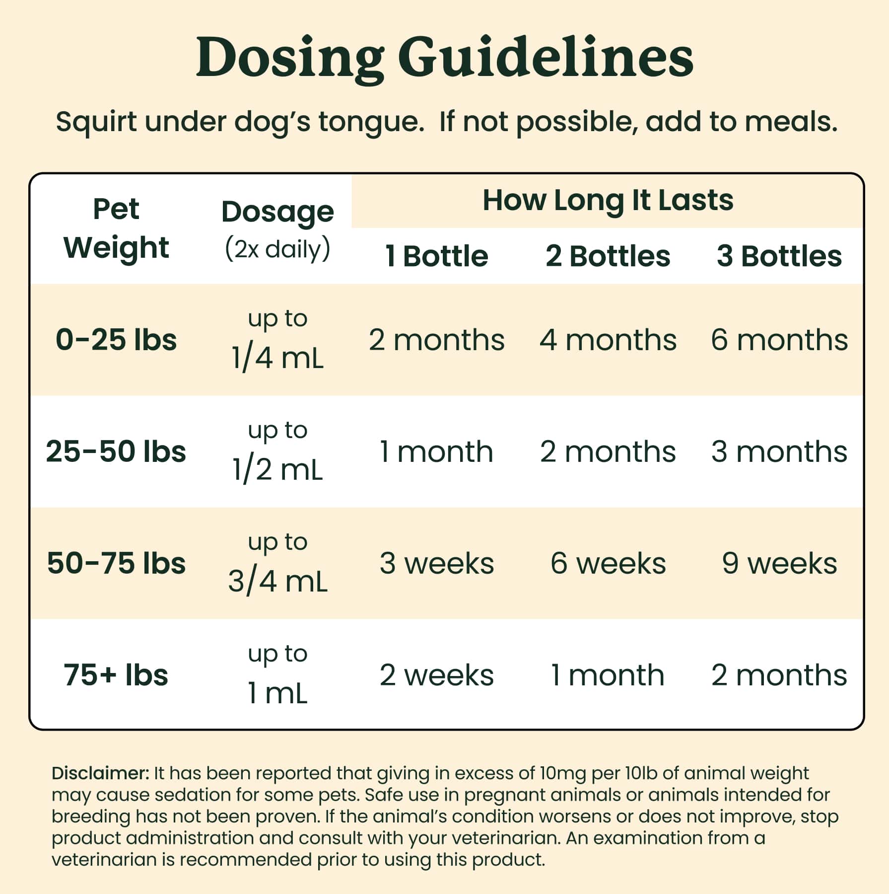 - Excess of 10mg CBD per 10 lbs may cause sedation.