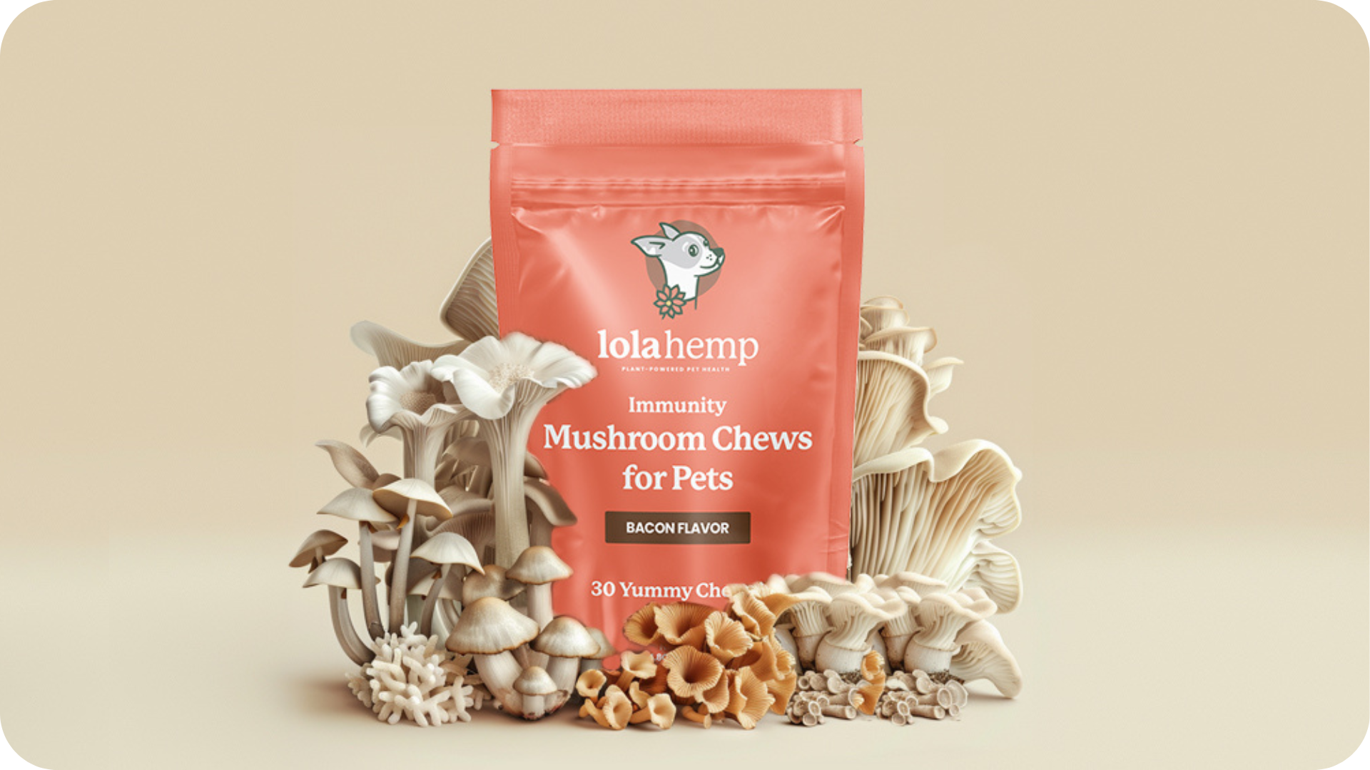 Lolahemp's Immunity Mushroom Chews for Dogs are vet-formulated with a special blend of functional mushrooms to support immunity and provide your dog with a holistic boost to overall wellness.